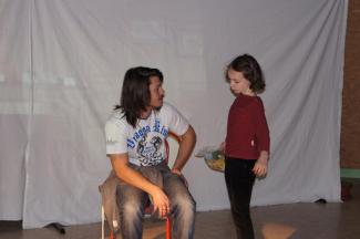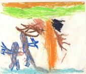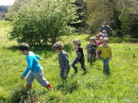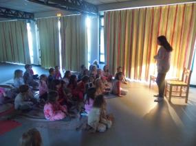Très vite, nous avons été séparés en deux groupes, avec nos correspondants, et nous sommes partis nous promener autour du centre, sur la colline et dans le bois. Les animateurs nous racontaient des contes.