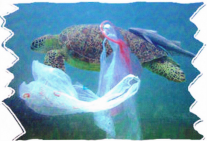 La tortue s’enroule et s’emmêle dans les sacs. Elle peut les avaler et en mourir.Lola, Lucas, Alan, Calia, Per-Yan
