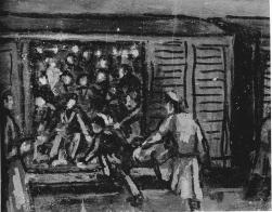 Sur le tableau il y a des marins sur un vieux bateau de guerre. C’est le soir et le ciel est étoilé. Des grandes lumières avec des hélices de toutes les couleurs sont sur les bateaux. La mer est de toutes les couleurs:rouge, bleu et vert. Et il y a beaucoup de boutons sur le tableau de bord. Ce tableau me plaît beaucoup parce qu’il y a plein de belles couleurs et je trouve que les bateaux sont beaux. Simon