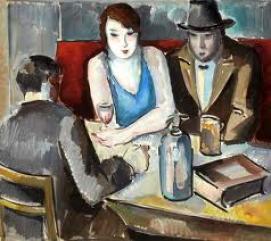 Le ciel est multicolore, il y a deux bateaux qui naviguent sur l’eau bleue et verte.Le capitaine tient une paire de jumelles. En bas à droite il y a la signature de Lapicque. Ce ne sont pas de bateaux de guerre mais de pêche.C’est le soleil couchant .J’aime ce tableau car il est joli. Valentin et Enzo V.
