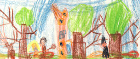 Le midi, nous avons pique-niqué et l’après midi, nous avons encore marché autourdu centre en faisant un rallye-photos.Lesoir,une conteuse est venue…A la fin du séjour, nous avions créé deux contes : « Garzuel et Narina », et « Monsieur Vieil arbre et Marc’arhit ». Nous les illustrerons en classe sous forme de romans photos.