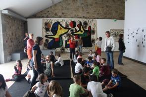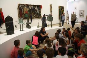 Clémence nous présente les sculptures en bronze que Miro a réalisées avec son ami Artigas. Elles représentent souvent des femmes. Elles sont réalisées avec différents objets : chaussures, carapace de tortue, chaise de bébé, outils,…