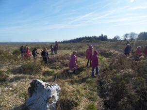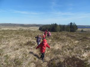 Le lendemain, nous sommes partis dans la lande, près du lac de Brénilis. Les ajoncs piquaient, il y avait des trous d’eau et des bosses…Pas facile !!!