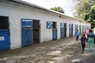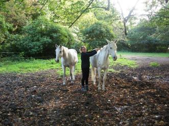 Combien y a -t-il de chevaux et de poneys au centre équestre ?Il y a 25 chevaux et poneys, à peu près autant de mâles (hongres) que de femelles.Les poneys ont une taille de moins de 1,48 m au garrot. Nous avons aussi un entier (mâle non castré) qui sert à la reproduction. Nous avons plusieurs races de chevaux et poneys : shetland, welsh, conémara, new forrest,…Combien êtes-vous à travailler au centre équestre ?Nous sommes deux, moi et Xavier, et parfois quelques stagiaires de l’école UFR de Landivisiau.