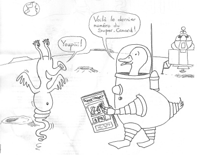 En fin de matinée, nous avons essayé nous aussi de devenir illustrateurs. Dans chaque groupe, on nous a raconté une histoire pressée de Bernard Friot ; il fallait illustrer et mettre en page sur un grand format la couverture de l’ album qui raconterait cette histoire. Ce n’était pas très facile mais on était plusieurs et François Roca passait dans les groupes pour nous donner des conseils.